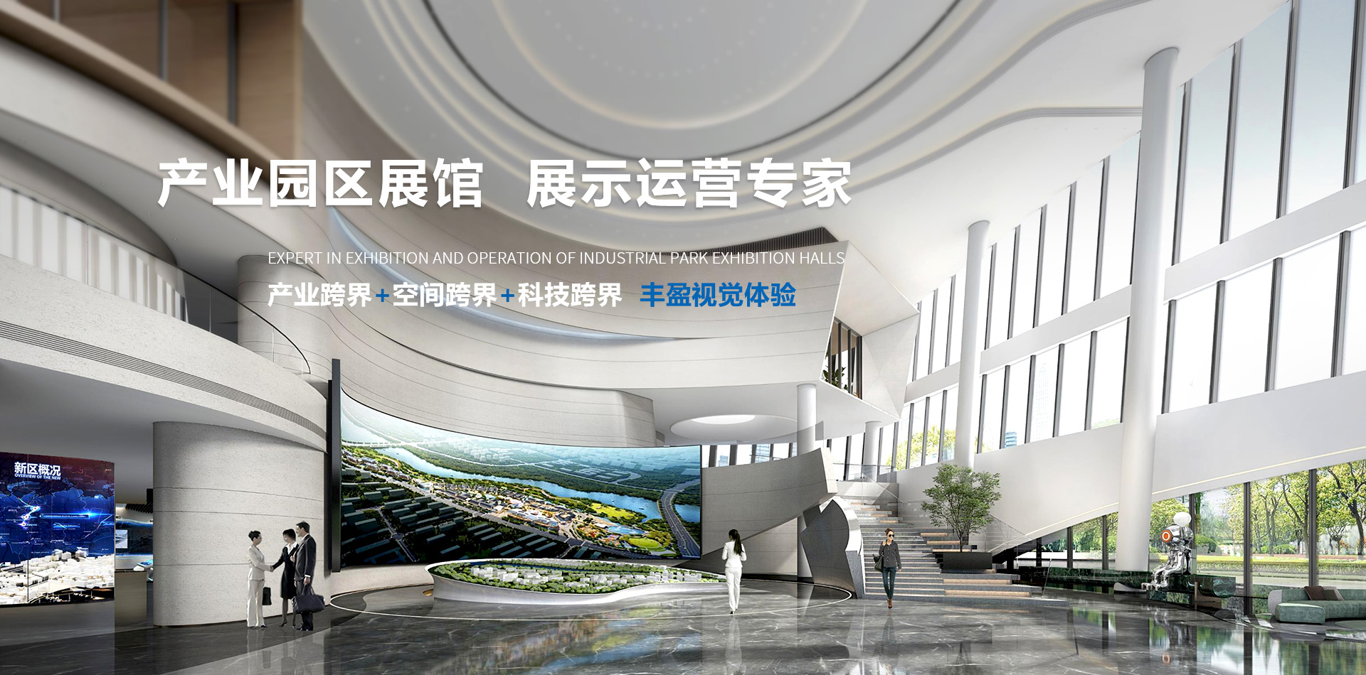華竣國際集合了產業(yè)定位、前瞻策劃、創(chuàng)意設計、數(shù)字視覺、定制工程、生態(tài)運營為一體的全流程展示服務,致力于為城市、產業(yè)園區(qū)、新興產業(yè)、大健康產業(yè)、教育科普、